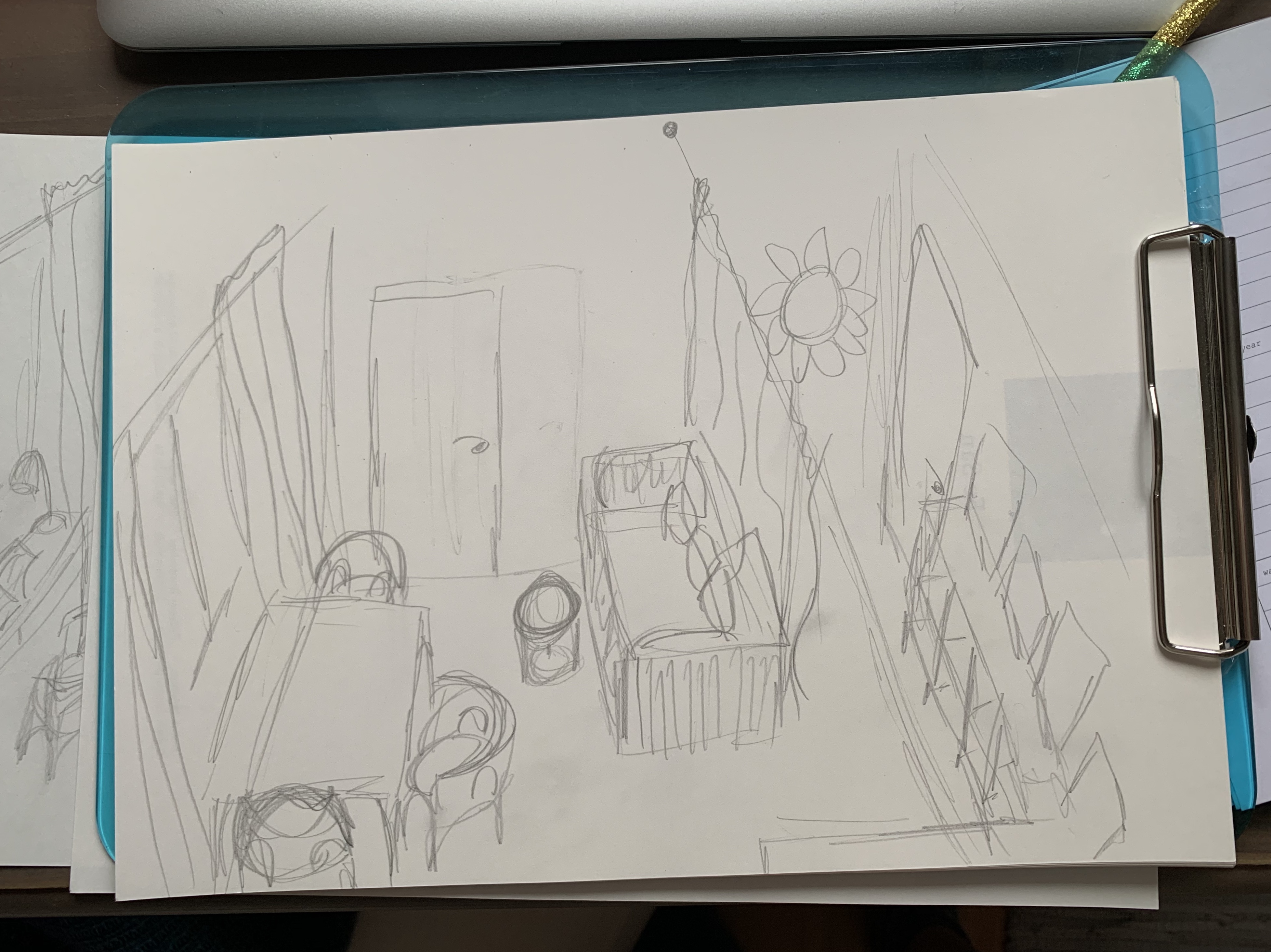 Keine Muschelhaus-Zeichnungen, aber Wohnräume skizzieren liebe ich.